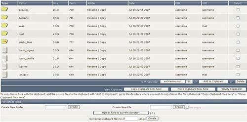 File Manager in Control Panel of Linux Server
