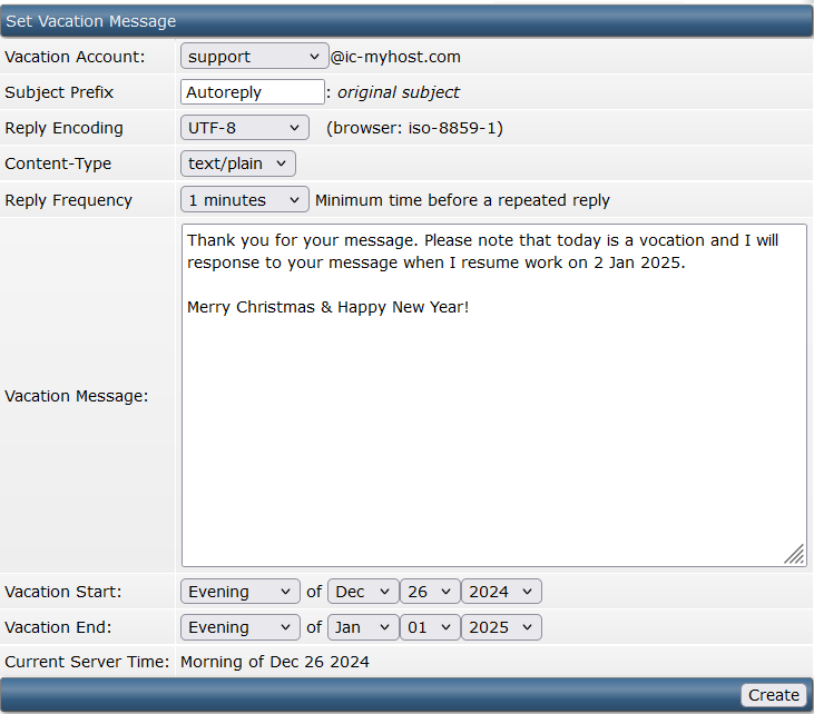 You can choose the Start - End Vocation period or select a User who controls the entire domain.