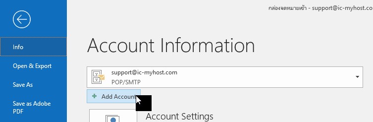 1. Click in menu File --> Account Information then press Add Account as following picture.