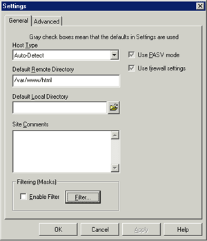 2. Binary ใช้สำหรับ files ที่ไม่สามารถเปิดอ่านโดย notepad ธรรมดาได้ เช่น รูปภาพทั้งหมด (gif, jpg, png), flash file (swf), MP3, Video, MPEG เป็นต้น ให้เลือก Default Transfer Type เป็น Auto-detect โดยโปรแกรมจะทำการเลือกวิธีการ transfer ให้กับเราเองในขณะที่ทำการ download หรือ upload โดยอาศัยการกำหนด Text Files Extensions ซึ่ง นามสกุลที่อยู่ในlist นี้จะทำการ transfer แบบ ASCII ส่วนนอกนั้นจะ transfer แบบ Binary โดย อัตโนมัติ ให้ตรวจสอบดูว่าใน list มี file ครบตามที่ต้องการหรือไม่ ถ้าไม่ครบให้ทำการเพิ่ม โดย Click Add และ พิมพ์ นามสกุลของ file ที่ต้องการลงไป