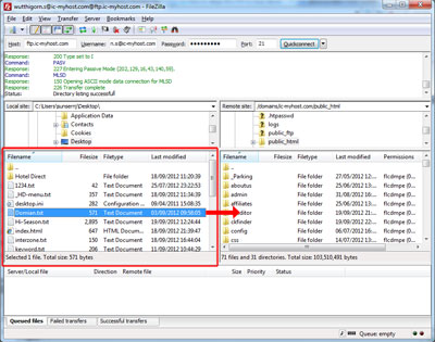 2. หลังจากกรอกข้อมูลครบถ้วนเรียบร้อยแล้ว ให้คลิกที่ปุ่ม Quickconnect จะพบว่าข้อมูลในหน้าต่างด้านขวามือ (Remote Site) เปลี่ยนไปดังนี้