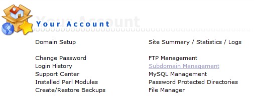 ทำการ login เข้าระบบ control panel จากนั้น ไปยังหัวข้อ Subdomain Management ตามรูปด้านล่าง