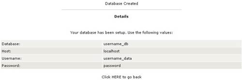 เมื่อระบบดําเนินการเรียบร้อยจะแสดงรายละเอียดที่จะนําไปใช้งานของ Database name ที่ทําการ สร้างขึ้นมาดังนี้