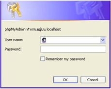 กรณีต้องการเข้า phpmyadmin ให้กด phpmyadmin จะขึ้น popup windows ให้ใส่ user / pass ดังรูป