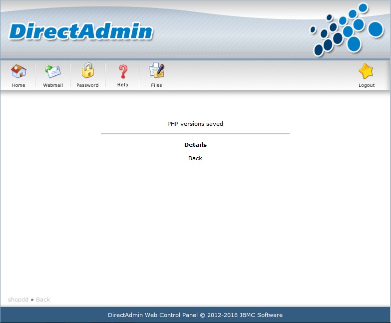1. ให้ทำการ Login เข้าสู่ Control Panel โดยเข้าผ่าน https://yourdomain.com:2222 ดังรูป 2. เลือกหัวข้อ Domain Setup 3. เลือกโดเมนที่ต้องการเปลี่ยน PHP Version 4. ในส่วนของหัวข้อ PHP Version Selector จะสามารถเลือก Version ที่ต้องการได้แล้วกด Save ดังรูป 5. เป็นอันเสร็จสิ้นการเปลี่ยน PHP Version ดังรูป