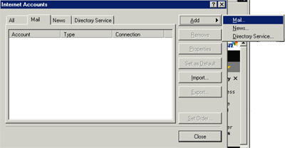 จะมีหน้าต่างดังรูปด้านล่าง ปรากฎขึ้นให้เลือกที่ แทบ Mail ทางด้านบนซ้ายมือให้คลิ๊กที่ปุ่ม Add->Mail เพื่อทำการ สร้าง user ขึ้นมาใหม่