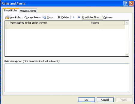 2. จะปรากฏหน้าจออีกหน้าหนึ่ง ให้คลิ๊กที่ New Rule เพื่อทำการสร้าง กฏ ในการจัดการ ดังรูป
