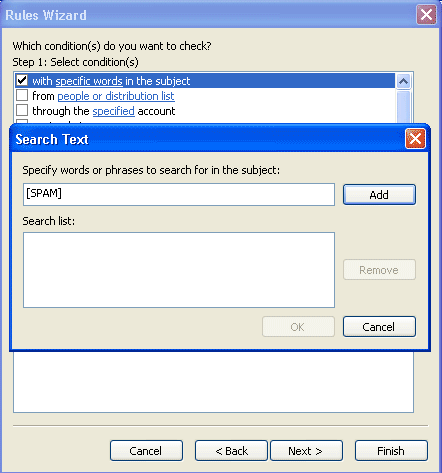 ให้ทำการใส่ข้อความที่เราจะต้องการกรอง ในที่นี้ให้ใส่คำว่า [SPAM] แล้วกดปุ่ม Add